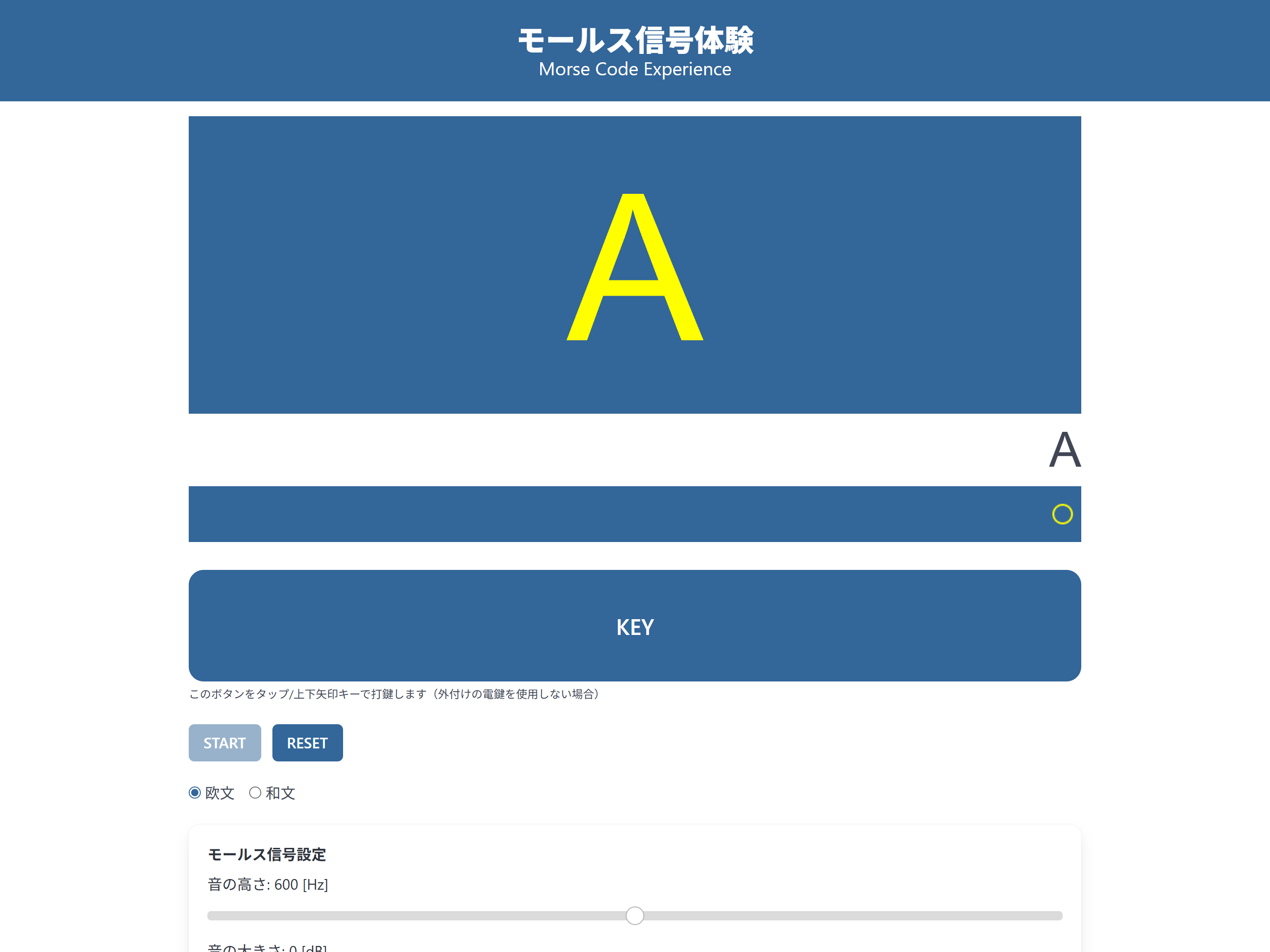 ランダムに選ばれた文字のモールス符号が繰り返し再生されます。