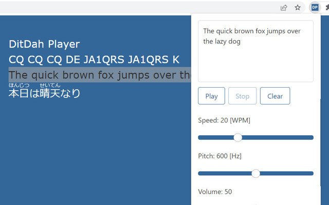 ブラウザー上で選択したテキストをモールス符号に変換して再生する Chrome 拡張プラグインです。
