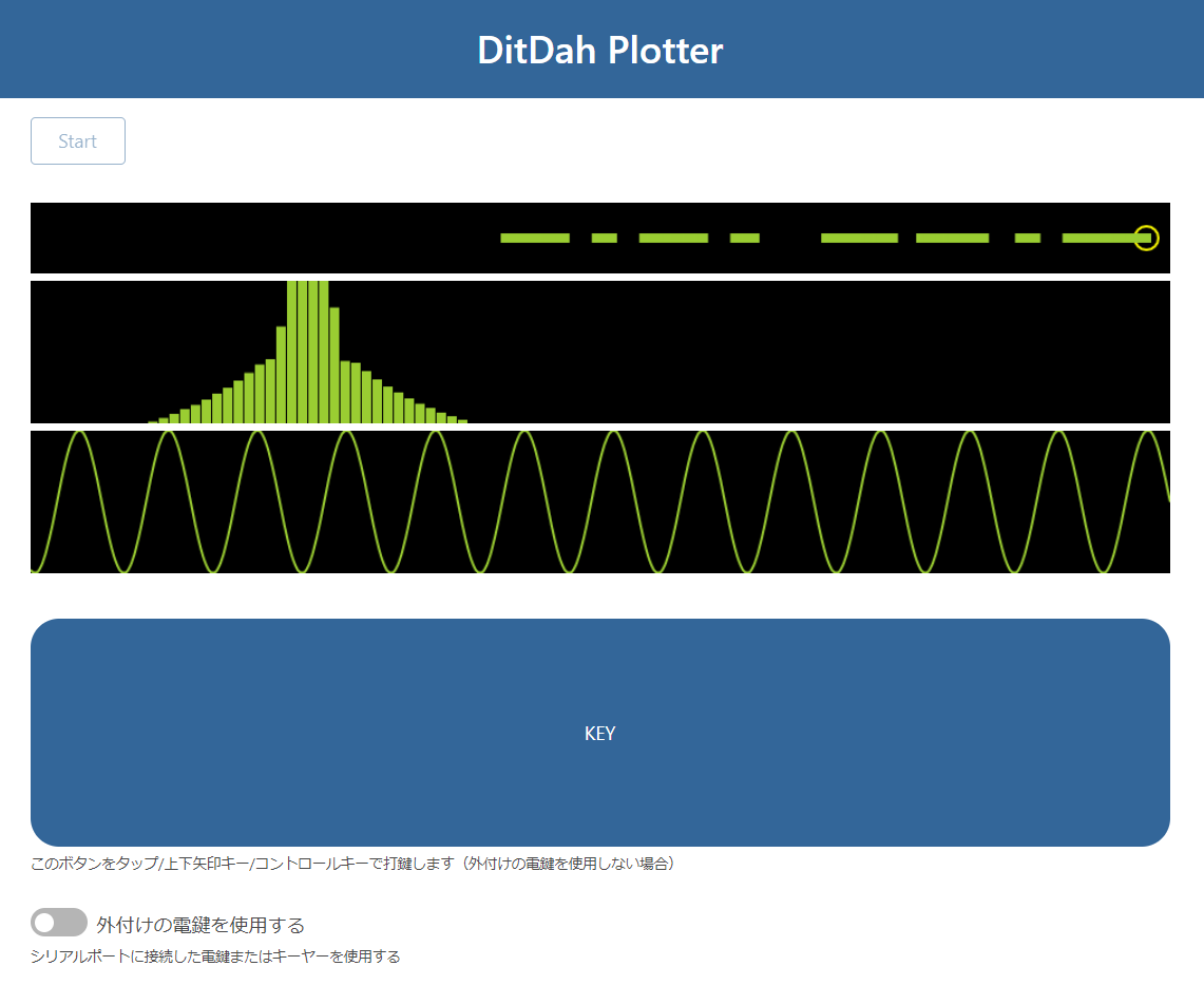 デコード機能を用いて、打鍵したモールス符号を確認できます。